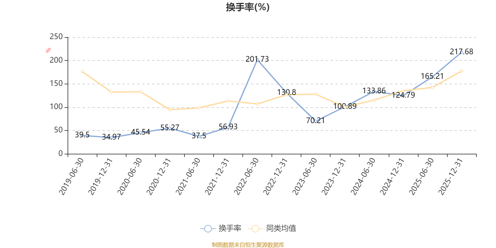 截至2025年12月31日,基金最近一年换手率约382.42%,持续1年高于同类均值。