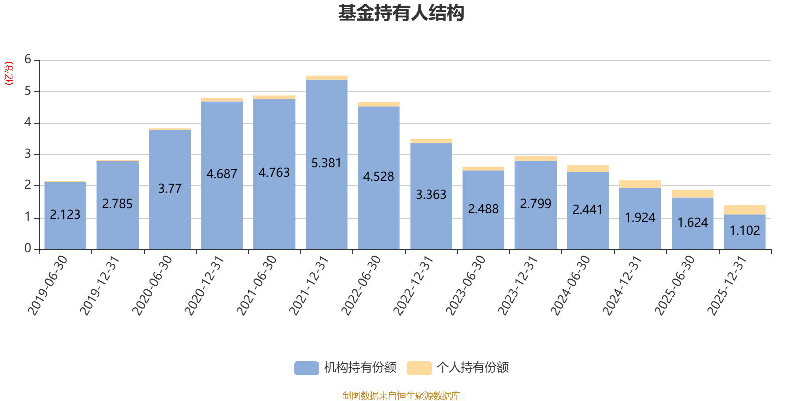 截至2025年12月31日,基金持有人共计758户,合计持有1.4亿份。其中管理人员工持有8407.92份,占比0.01%,机构持有份额占比78.93%,个人投资者占比21.07%。