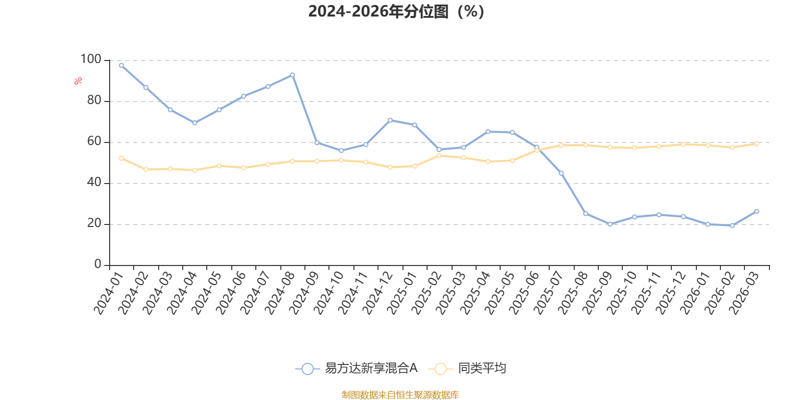 通过所选区间该基金净值增长率分位图,可以观察该基金与同类基金业绩比较情况。图为坐标原点到区间内某时点的净值增长率在同类基金中的分位数。