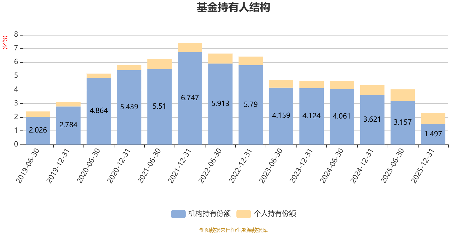 截至2025年12月31日,基金持有人共计1.85万户,合计持有2.31亿份。其中管理人员工持有8.48万份,占比0.04%,机构持有份额占比64.94%,个人投资者占比35.06%。