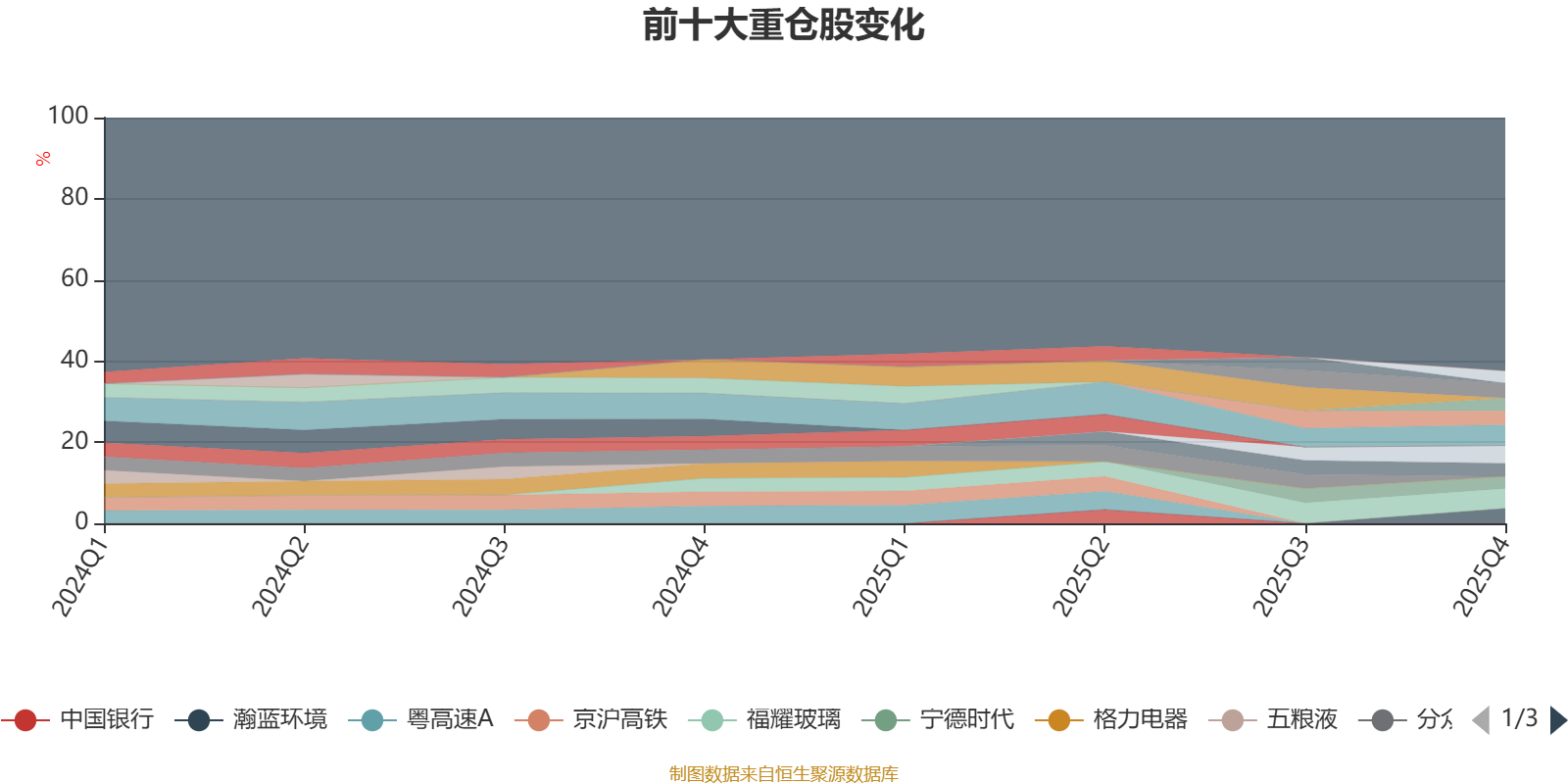 截至2025年末,基金十大重仓股分别是长江电力、福耀玻璃、中国平安、瀚蓝环境、中天科技、牧原股份、海大集团、贵州茅台、宁德时代、招商银行。