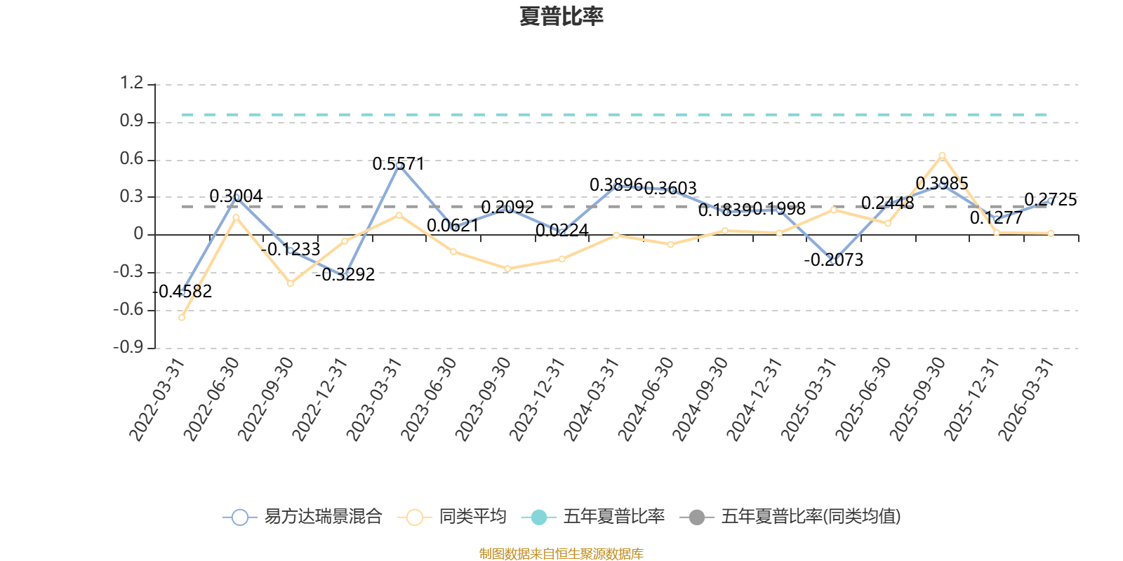 截至3月31日,基金近三年夏普比率为1.3699,位于同类可比基金9/1274。