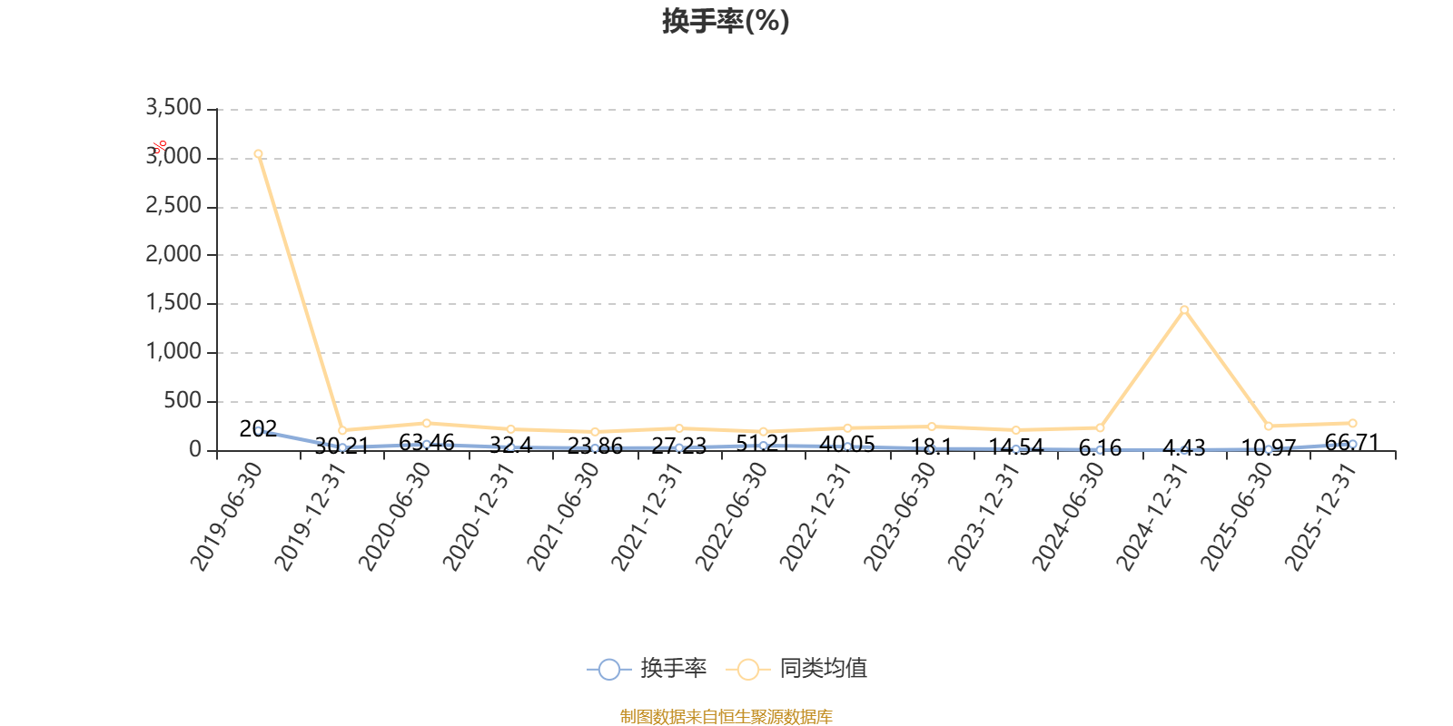 截至2025年12月31日,基金最近一年换手率约72.34%,持续低于同类均值。