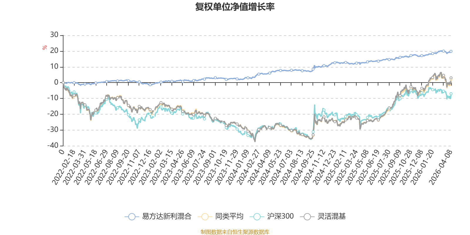 截至4月8日,易方达新利混合近三个月复权单位净值增长率为1.52%,位于同类可比基金461/1287;近半年复权单位净值增长率为2.70%,位于同类可比基金628/1286;近一年复权单位净值增长率为6.92%,位于同类可比基金1132/1286;近三年复权单位净值增长率为18.39%,位于同类可比基金529/1286。