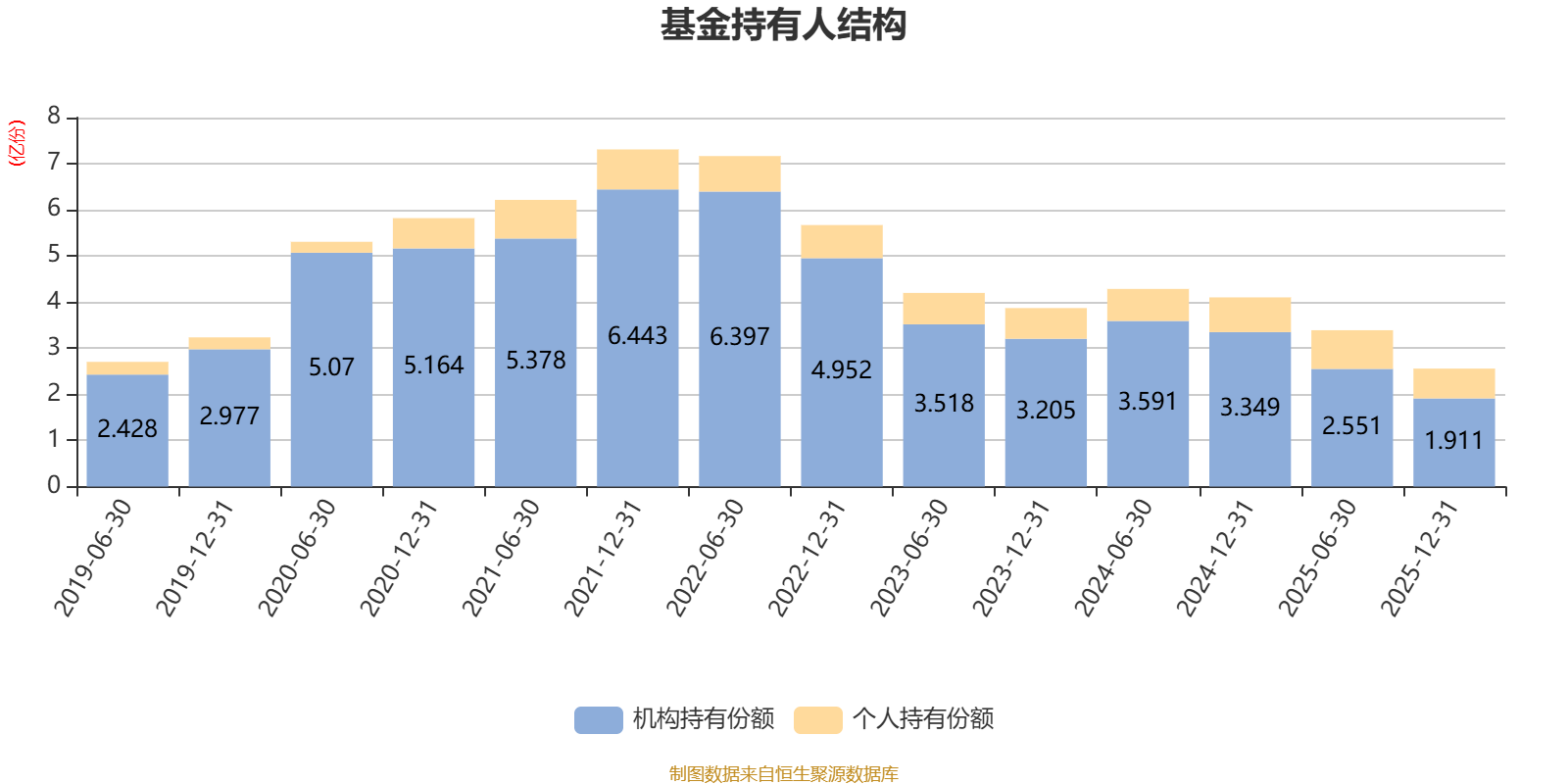 截至2025年12月31日,基金持有人共计1803户,合计持有2.56亿份。其中管理人员工持有4842.35份,机构持有份额占比74.71%,个人投资者占比25.29%。