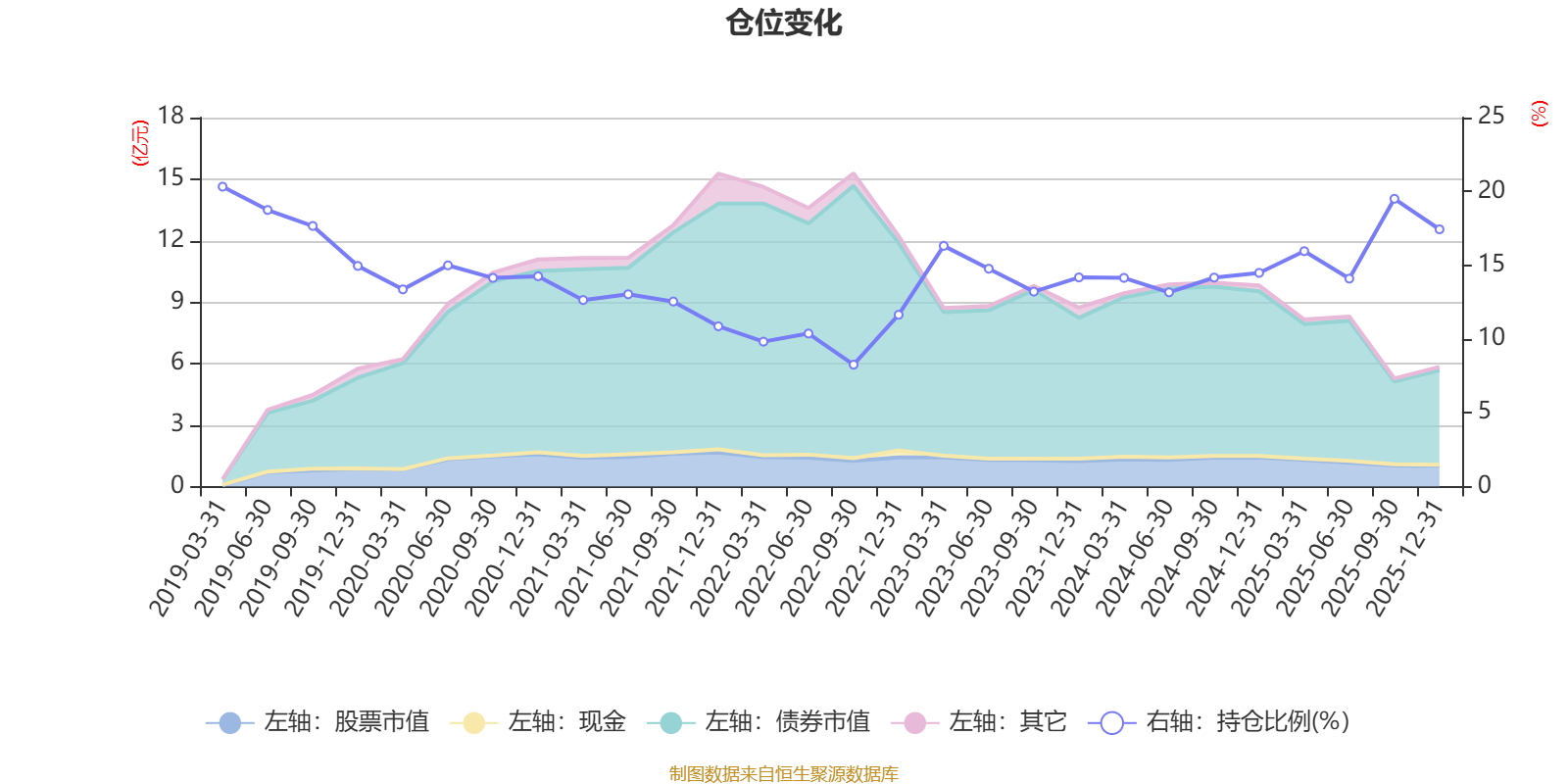 据定期报告数据统计,近三年平均股票仓位为15.11%,同类平均为72.57%。2019年一季度末基金达到20.32%的最高仓位,2022年三季度末最低,为8.26%。