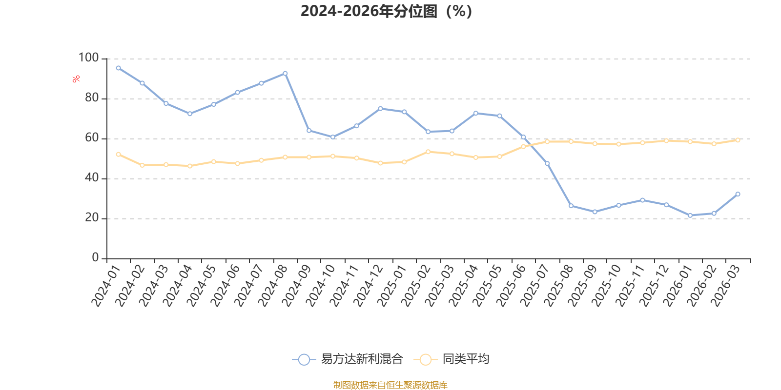 通过所选区间该基金净值增长率分位图,可以观察该基金与同类基金业绩比较情况。图为坐标原点到区间内某时点的净值增长率在同类基金中的分位数。