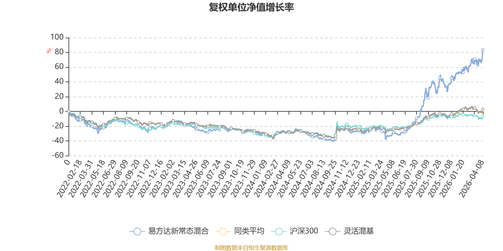 截至4月8日,易方达新常态混合近三个月复权单位净值增长率为20.58%,位于同类可比基金21/1287;近半年复权单位净值增长率为33.77%,位于同类可比基金25/1286;近一年复权单位净值增长率为194.80%,位于同类可比基金10/1286;近三年复权单位净值增长率为127.24%,位于同类可比基金17/1286。