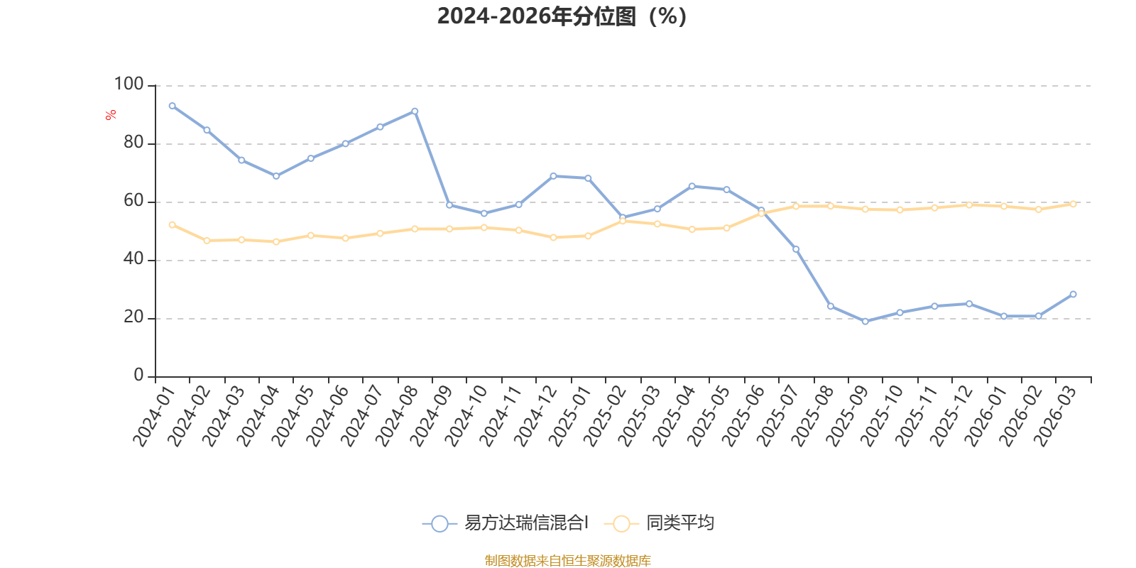 通过所选区间该基金净值增长率分位图,可以观察该基金与同类基金业绩比较情况。图为坐标原点到区间内某时点的净值增长率在同类基金中的分位数。