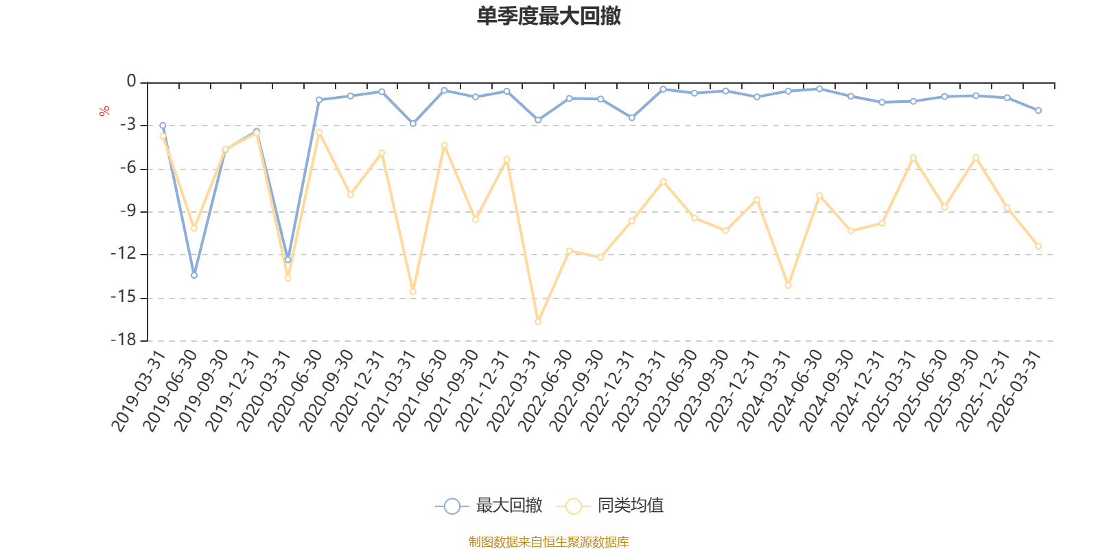 截至4月8日,基金近三年最大回撤为1.96%,同类可比基金排名16/1264。单季度最大回撤出现在2019年二季度,为13.44%。