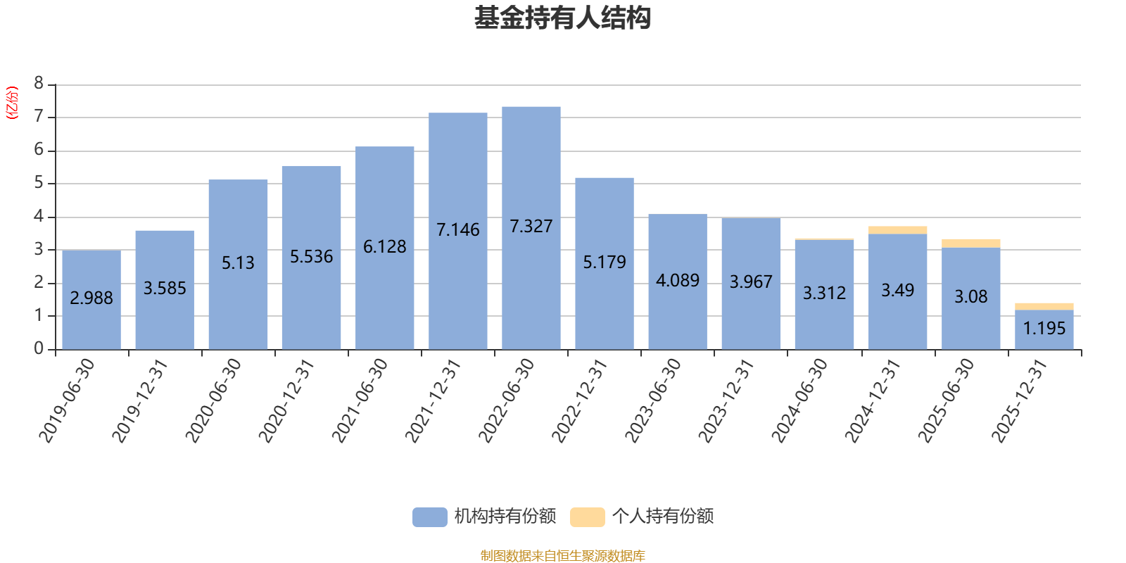 截至2025年12月31日,基金持有人共计1541户,合计持有1.4亿份。其中管理人员工持有4.56万份,占比0.03%,机构持有份额占比85.54%,个人投资者占比14.46%。