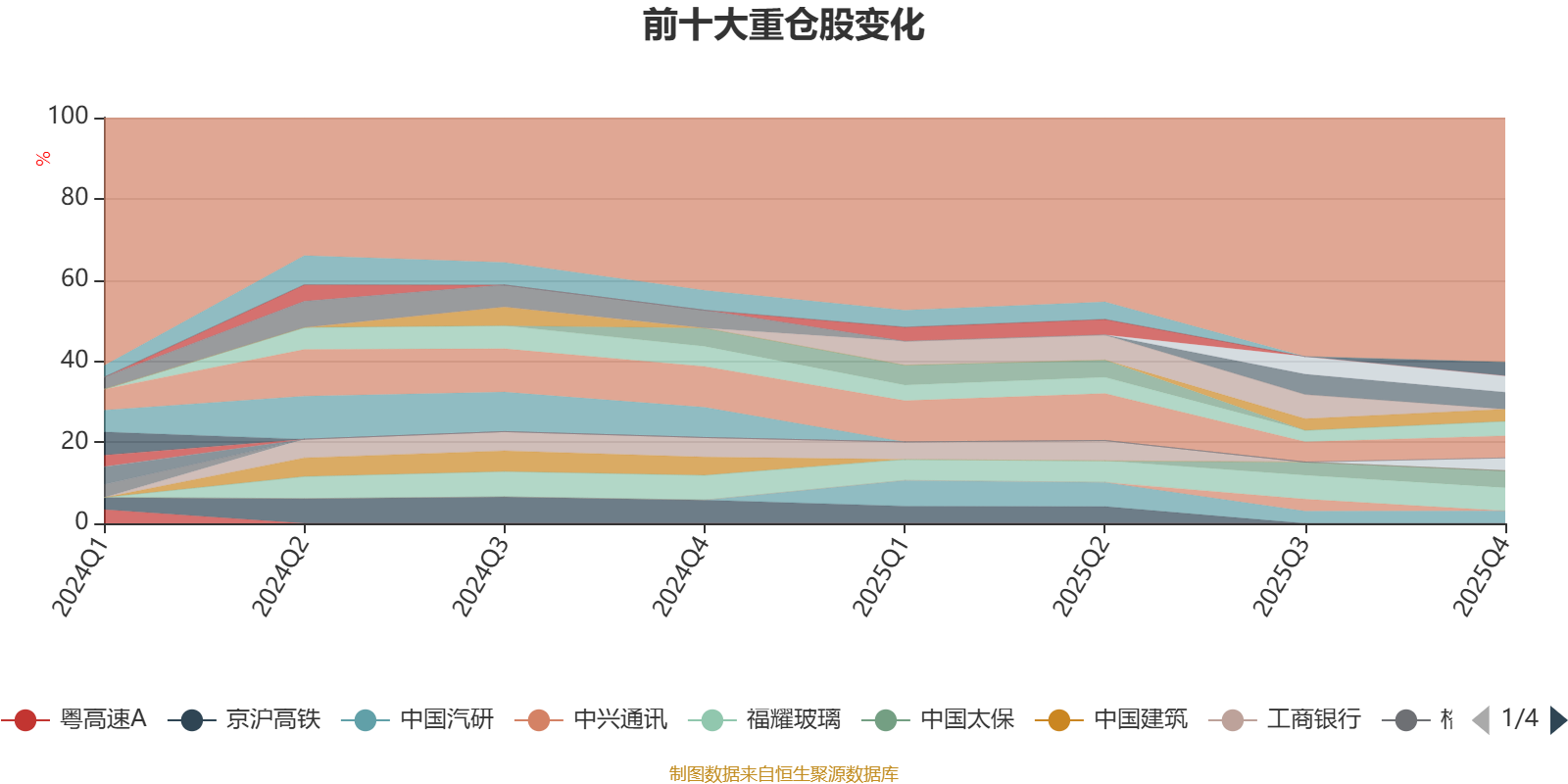 截至2025年末,基金十大重仓股分别是福耀玻璃、长江电力、中国太保、中天科技、立讯精密、中国石化、紫金矿业、赛轮轮胎、中国汽研、贵州茅台。