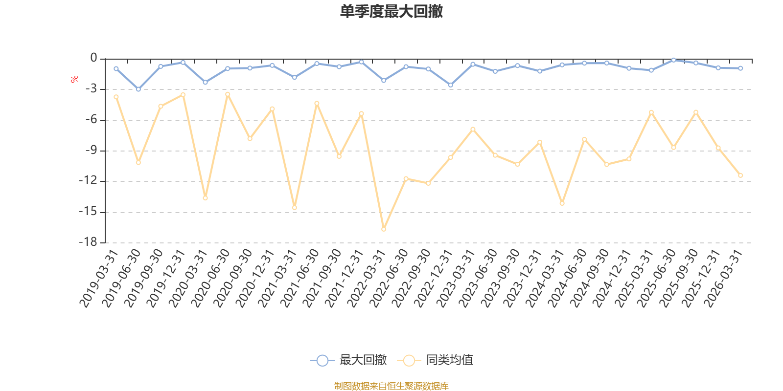 截至4月8日,基金近三年最大回撤为1.75%,同类可比基金排名9/1264。单季度最大回撤出现在2019年二季度,为2.99%。