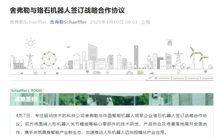 舍弗勒与珞石机器人签订战略合作协议