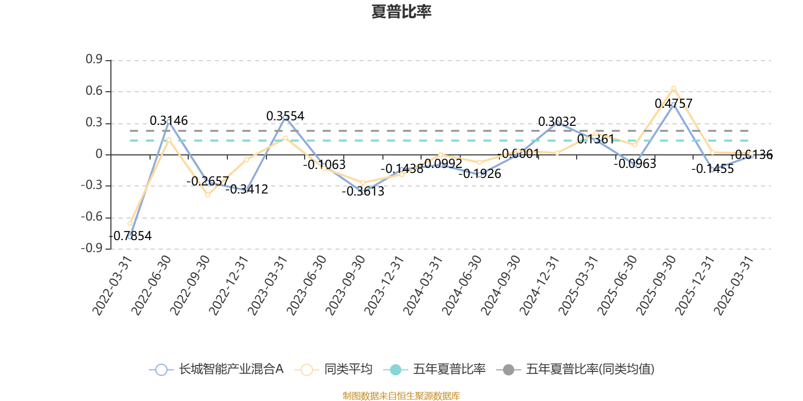 截至3月31日,基金近三年夏普比率为0.2743,位于同类可比基金912/1274。