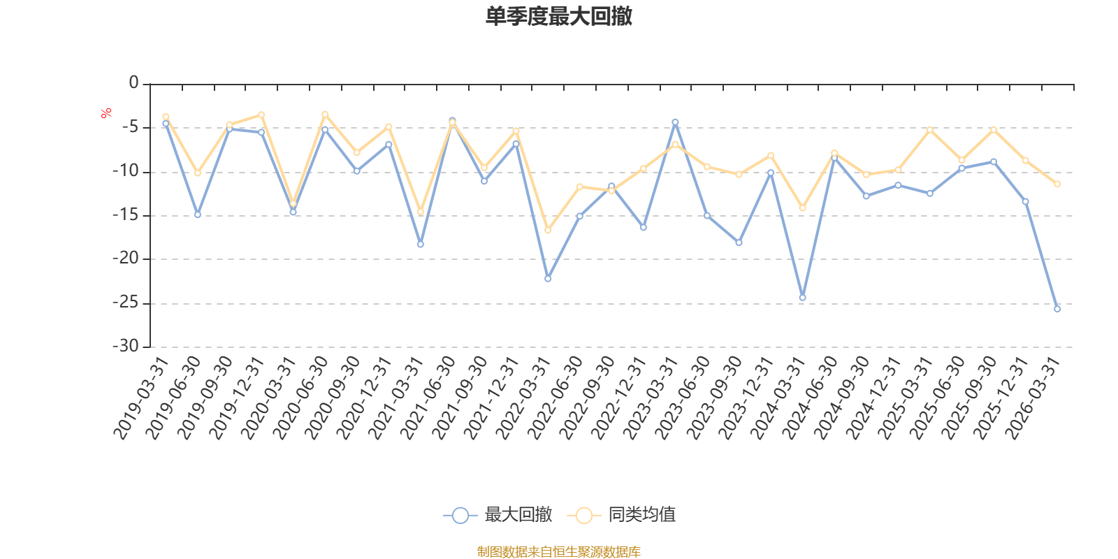 截至4月8日,基金近三年最大回撤为44.27%,同类可比基金排名1124/1264。单季度最大回撤出现在2026年一季度,为25.67%。