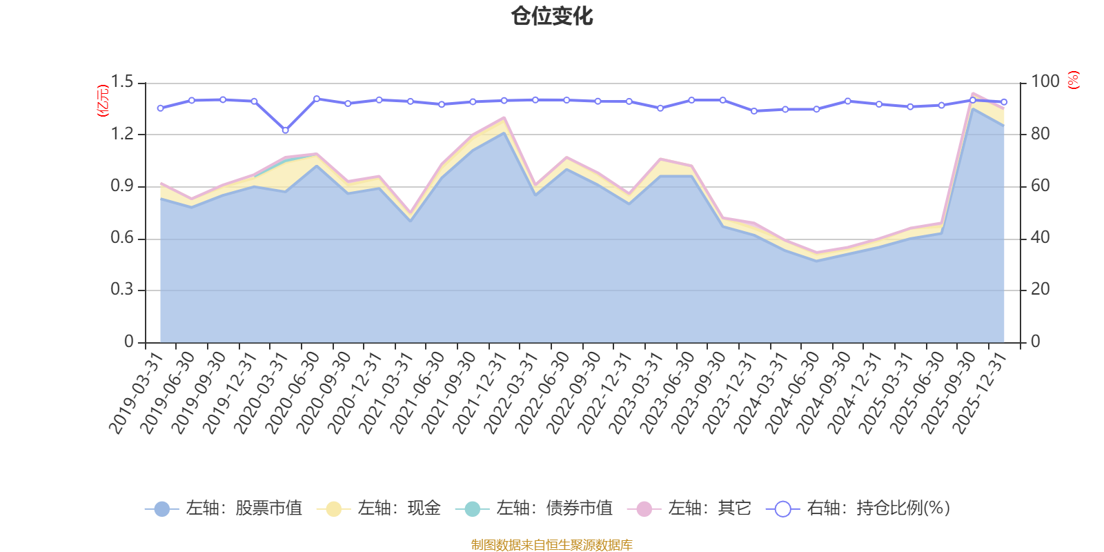 据定期报告数据统计,近三年平均股票仓位为91.54%,同类平均为72.57%。2020年上半年末基金达到93.86%的最高仓位,2020年一季度末最低,为81.73%。