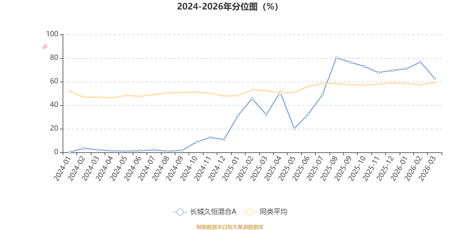 通过所选区间该基金净值增长率分位图,可以观察该基金与同类基金业绩比较情况。图为坐标原点到区间内某时点的净值增长率在同类基金中的分位数。