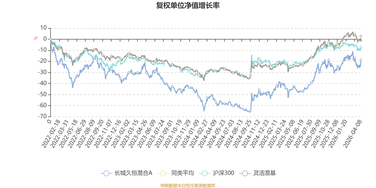 截至4月8日,长城久恒混合A近三个月复权单位净值增长率为0.16%,位于同类可比基金642/1287;近半年复权单位净值增长率为1.66%,位于同类可比基金721/1286;近一年复权单位净值增长率为73.20%,位于同类可比基金184/1286;近三年复权单位净值增长率为7.45%,位于同类可比基金793/1286。