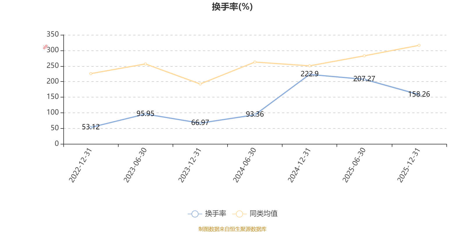 截至2025年12月31日,基金最近一年换手率约369.45%,持续低于同类均值。