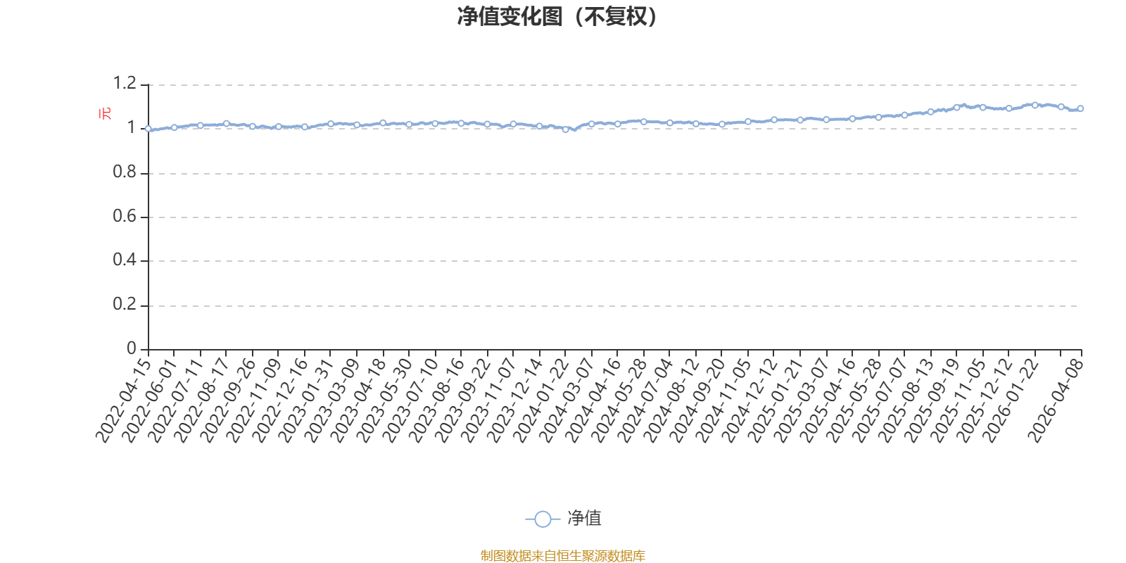 该基金属于偏债混合型基金。截至4月8日,单位净值为1.091元。基金经理是吴文明和张瑞。