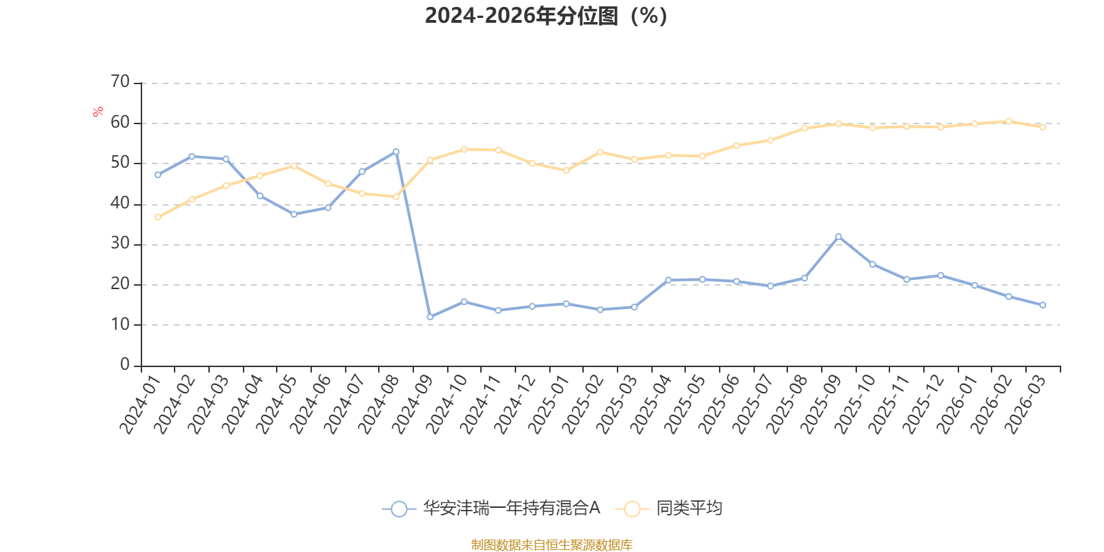 通过所选区间该基金净值增长率分位图,可以观察该基金与同类基金业绩比较情况。图为坐标原点到区间内某时点的净值增长率在同类基金中的分位数。