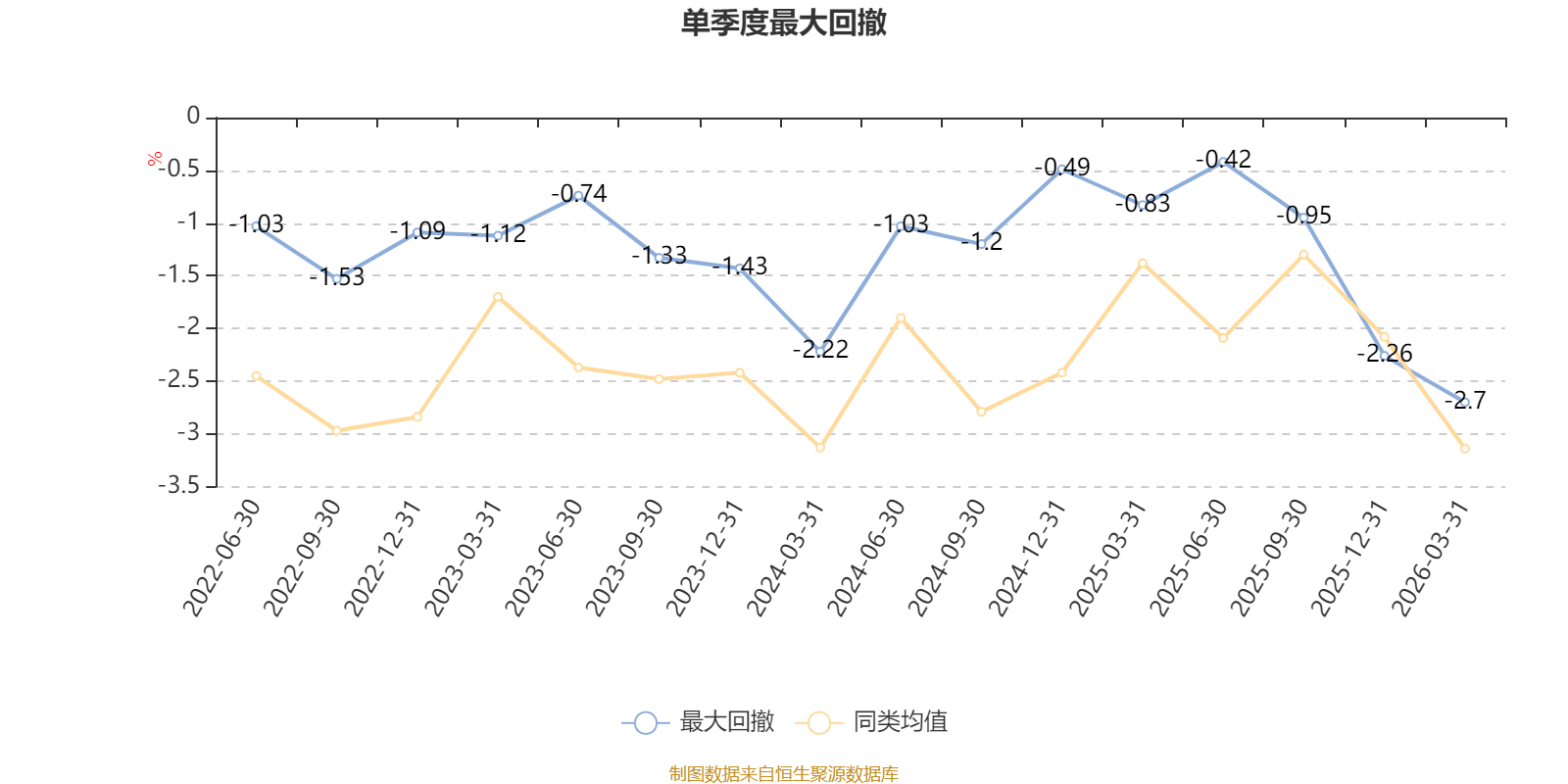 截至4月8日,基金近三年最大回撤为3.76%,同类可比基金排名101/534。单季度最大回撤出现在2026年一季度,为2.7%。