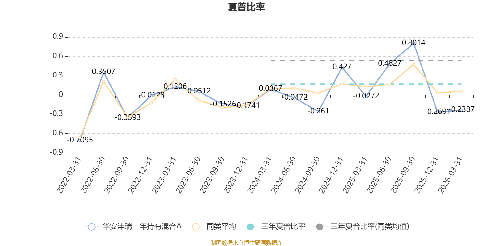 截至3月31日,基金近三年夏普比率为0.167,位于同类可比基金441/550。