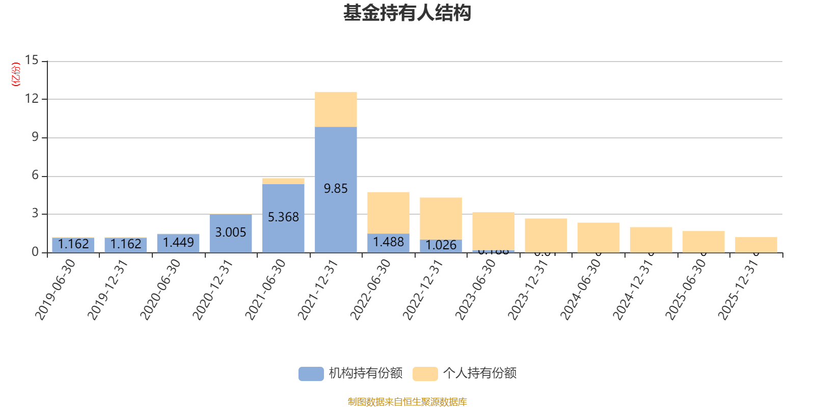 截至2025年12月31日,基金持有人共计22.17万户,合计持有1.21亿份。其中管理人员工持有475.08万份,占比3.92%,机构持有份额占比0.00%,个人投资者占比100.00%。