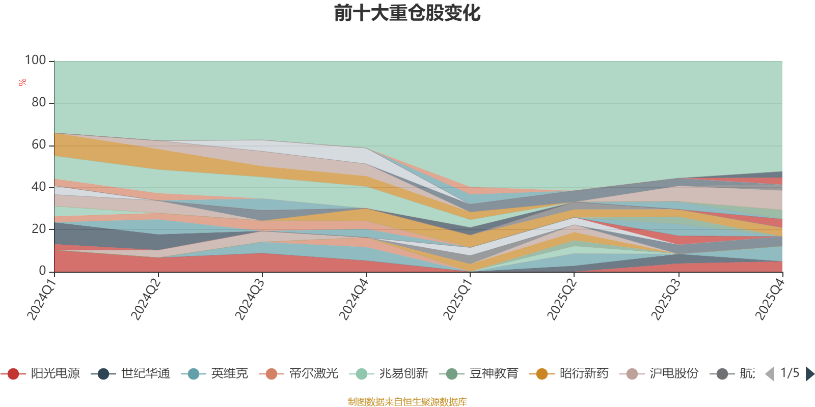 截至2025年末,基金十大重仓股分别是中际旭创、英维克、阳光电源、芯原股份、振华股份、隆基绿能、应流股份、信维通信、华正新材、生益科技。