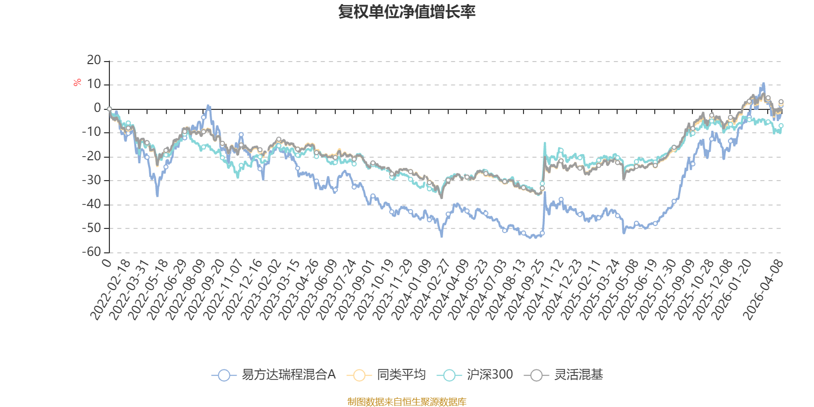 截至4月8日,易方达瑞程混合A近三个月复权单位净值增长率为7.93%,位于同类可比基金132/1287;近半年复权单位净值增长率为17.61%,位于同类可比基金109/1286;近一年复权单位净值增长率为111.89%,位于同类可比基金46/1286;近三年复权单位净值增长率为39.90%,位于同类可比基金214/1286。