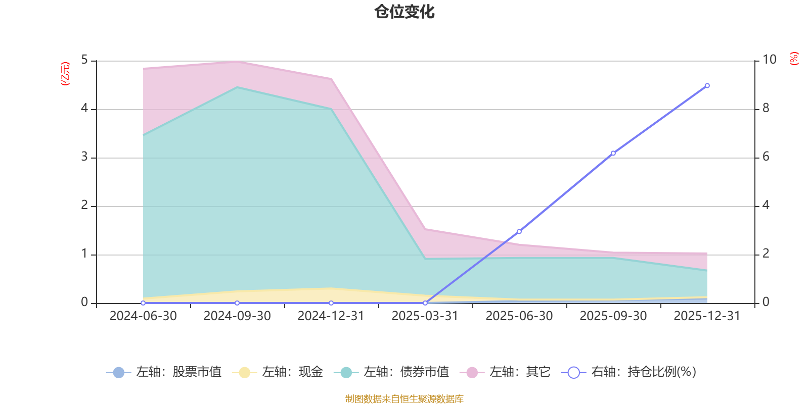 据定期报告数据统计,成立以来平均股票仓位为2.59%,同类平均为67.52%。2025年末基金达到8.97%的最高仓位,2025年上半年末最低,为2.95%。