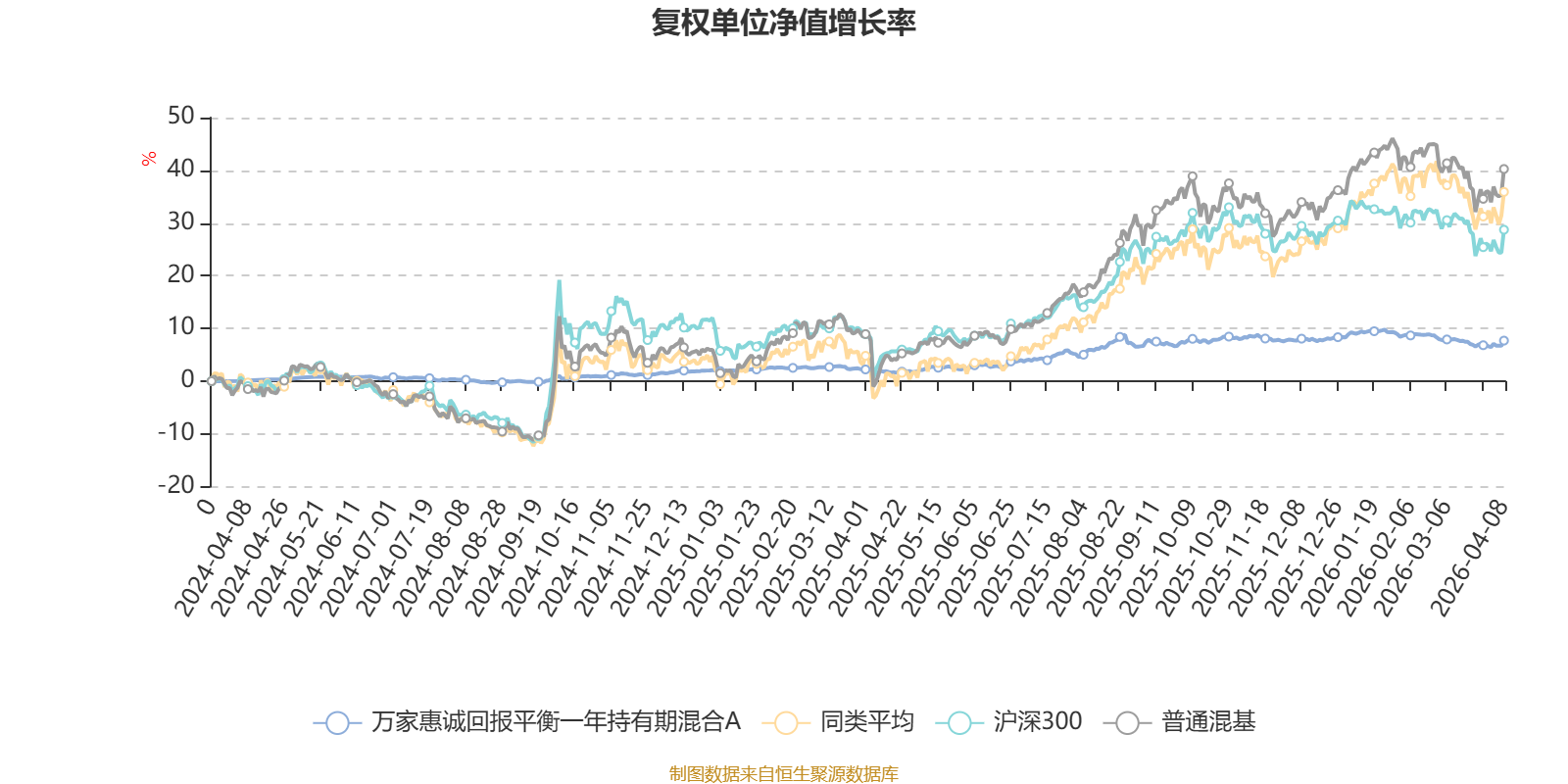 截至4月8日,万家惠诚回报平衡一年持有期混合A近三个月复权单位净值增长率为-1.21%,位于同类可比基金83/134;近半年复权单位净值增长率为-0.26%,位于同类可比基金88/134;近一年复权单位净值增长率为6.05%,位于同类可比基金123/134。