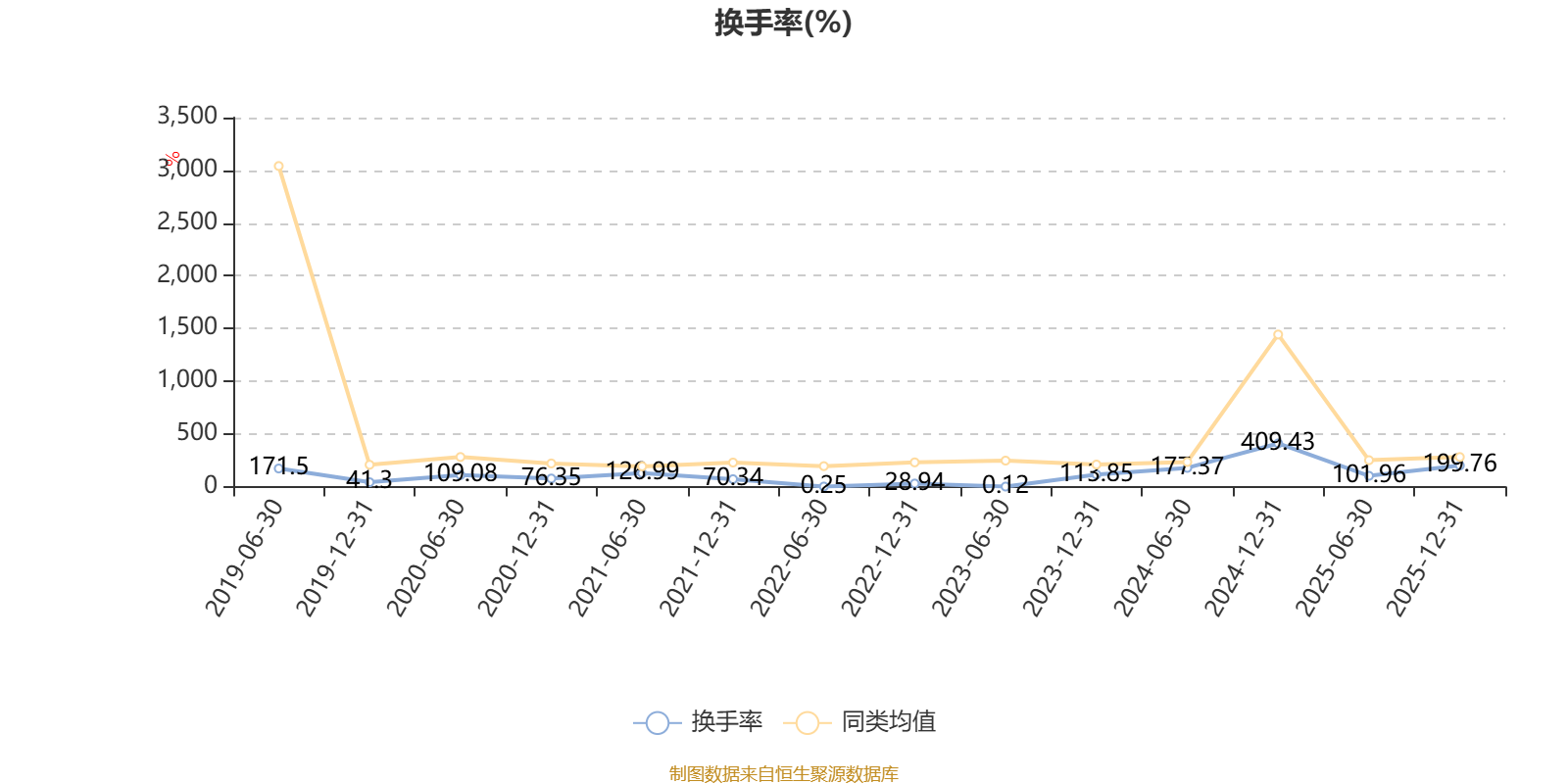 截至2025年12月31日,基金最近一年换手率约300.05%,持续低于同类均值。