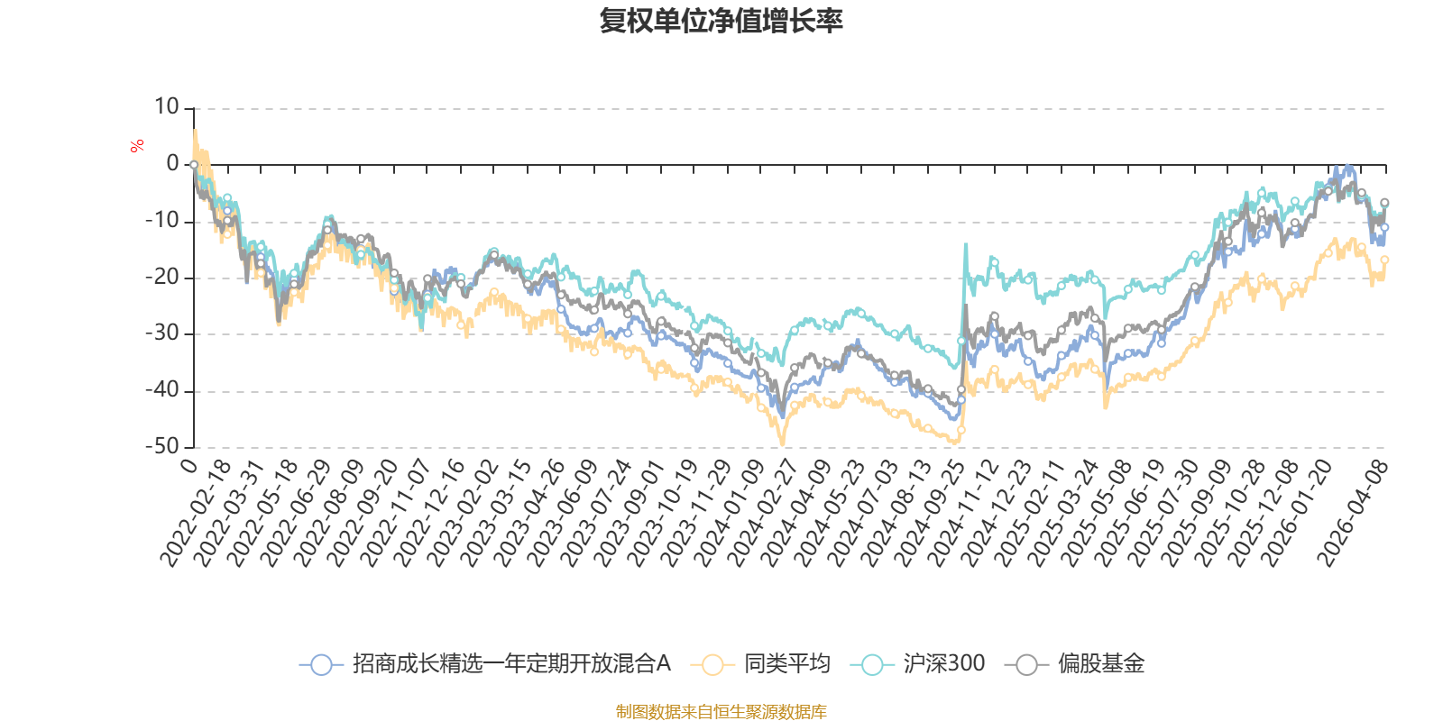 截至4月8日,招商成长精选一年定期开放混合A近三个月复权单位净值增长率为-5.65%,位于同类可比基金519/621;近半年复权单位净值增长率为-0.56%,位于同类可比基金386/621;近一年复权单位净值增长率为47.17%,位于同类可比基金243/618;近三年复权单位净值增长率为10.70%,位于同类可比基金315/559。