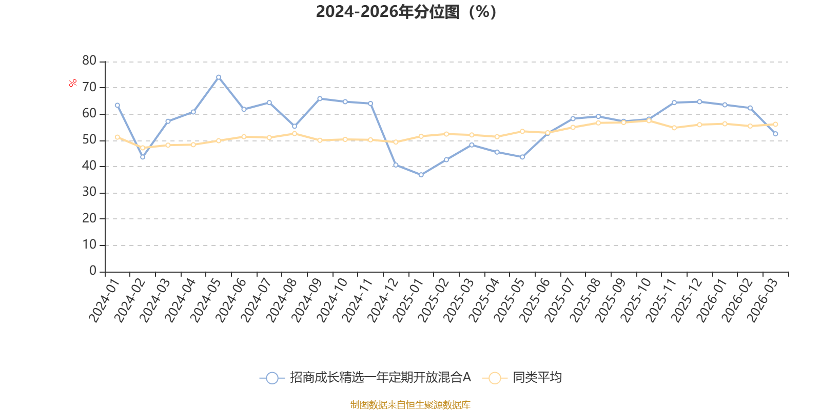 通过所选区间该基金净值增长率分位图,可以观察该基金与同类基金业绩比较情况。图为坐标原点到区间内某时点的净值增长率在同类基金中的分位数。