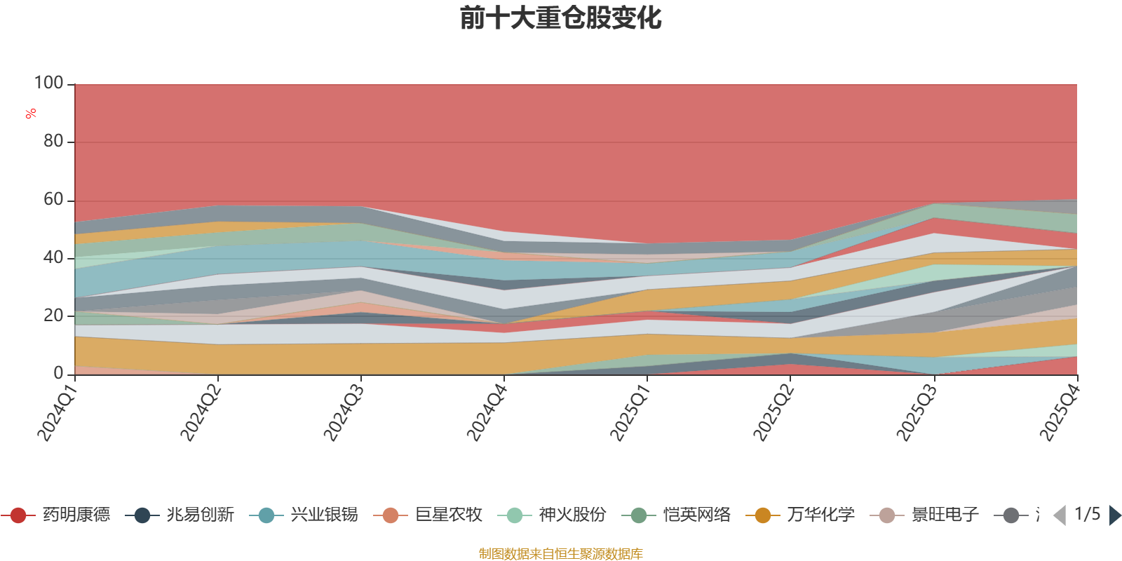 截至2025年末,基金十大重仓股分别是万华化学、云铝股份、中际旭创、药明康德、洛阳钼业、中国平安、新易盛、中国铝业、景旺电子、神火股份。