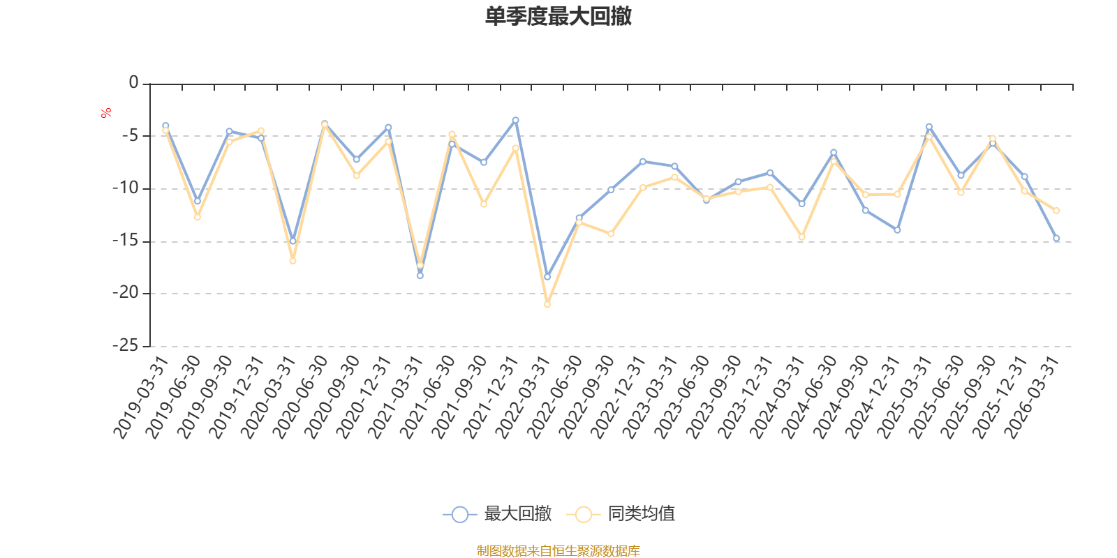 截至4月8日,基金近三年最大回撤为25.52%,同类可比基金排名39/125。单季度最大回撤出现在2022年一季度,为18.38%。