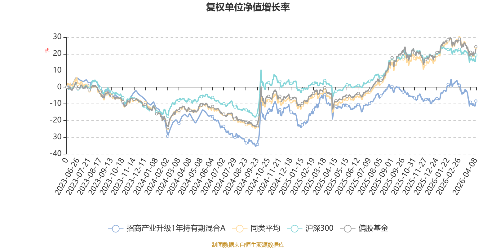 截至4月8日,招商产业升级1年持有期混合A近三个月复权单位净值增长率为-4.91%,位于同类可比基金498/621;近半年复权单位净值增长率为-6.80%,位于同类可比基金509/621;近一年复权单位净值增长率为10.41%,位于同类可比基金582/618。