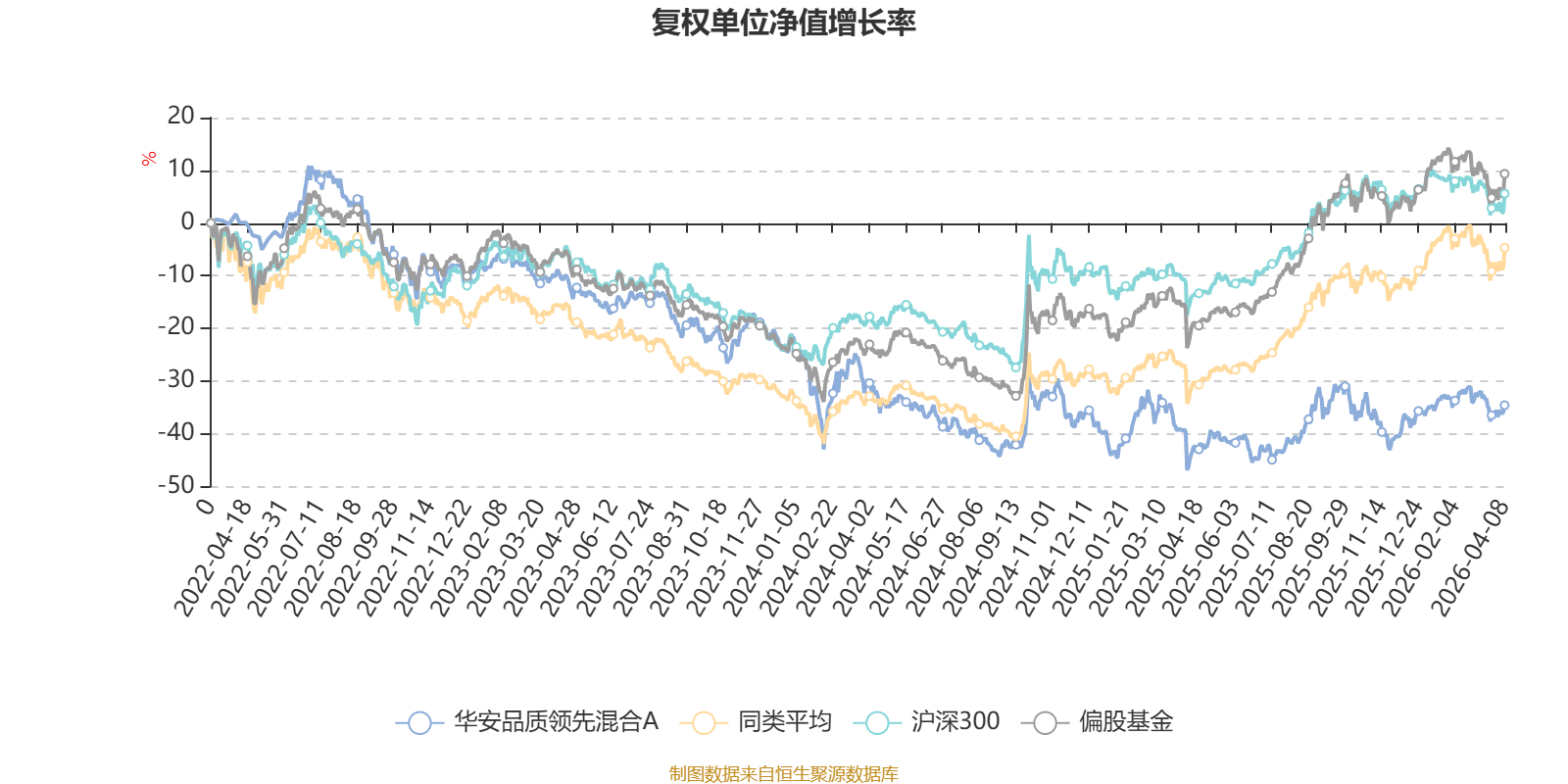 截至4月8日,华安品质领先混合A近三个月复权单位净值增长率为0.60%,位于同类可比基金309/689;近半年复权单位净值增长率为-5.58%,位于同类可比基金545/689;近一年复权单位净值增长率为22.05%,位于同类可比基金534/685;近三年复权单位净值增长率为-28.20%,位于同类可比基金394/417。