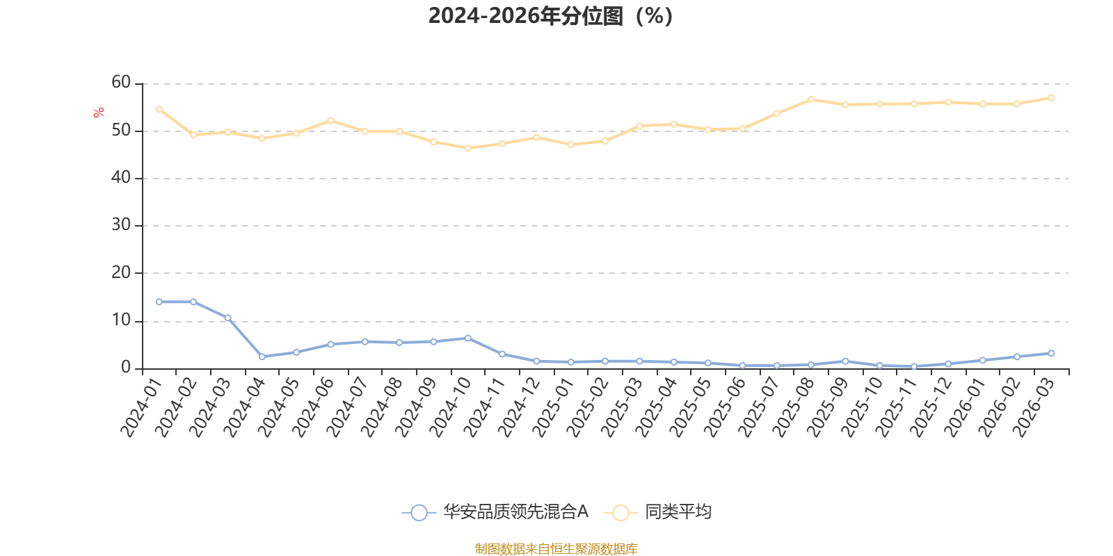 通过所选区间该基金净值增长率分位图,可以观察该基金与同类基金业绩比较情况。图为坐标原点到区间内某时点的净值增长率在同类基金中的分位数。