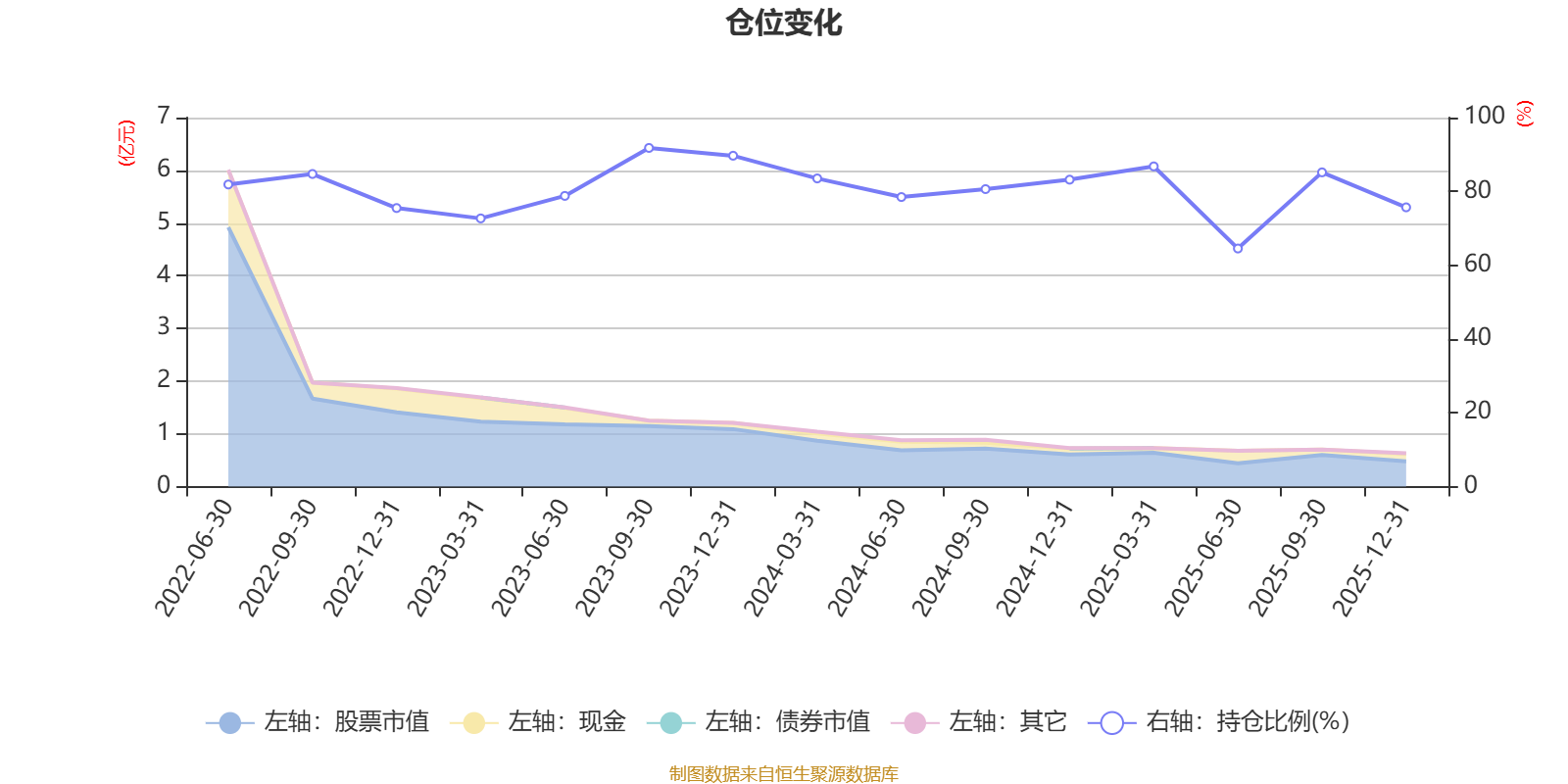 据定期报告数据统计,近三年平均股票仓位为80.9%,同类平均为84.04%。2023年三季度末基金达到91.78%的最高仓位,2025年上半年末最低,为64.52%。