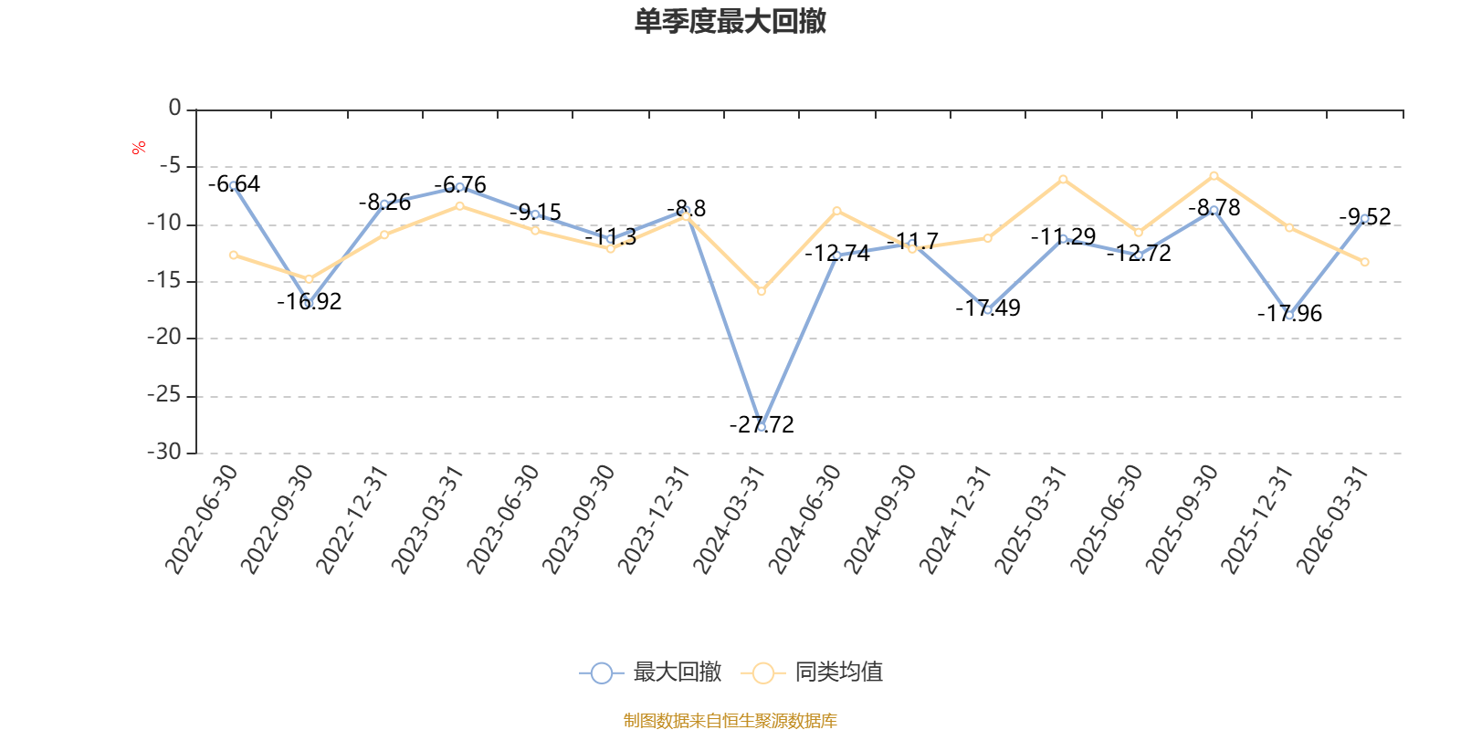 截至4月8日,基金近三年最大回撤为41.7%,同类可比基金排名308/392。单季度最大回撤出现在2024年一季度,为27.72%。