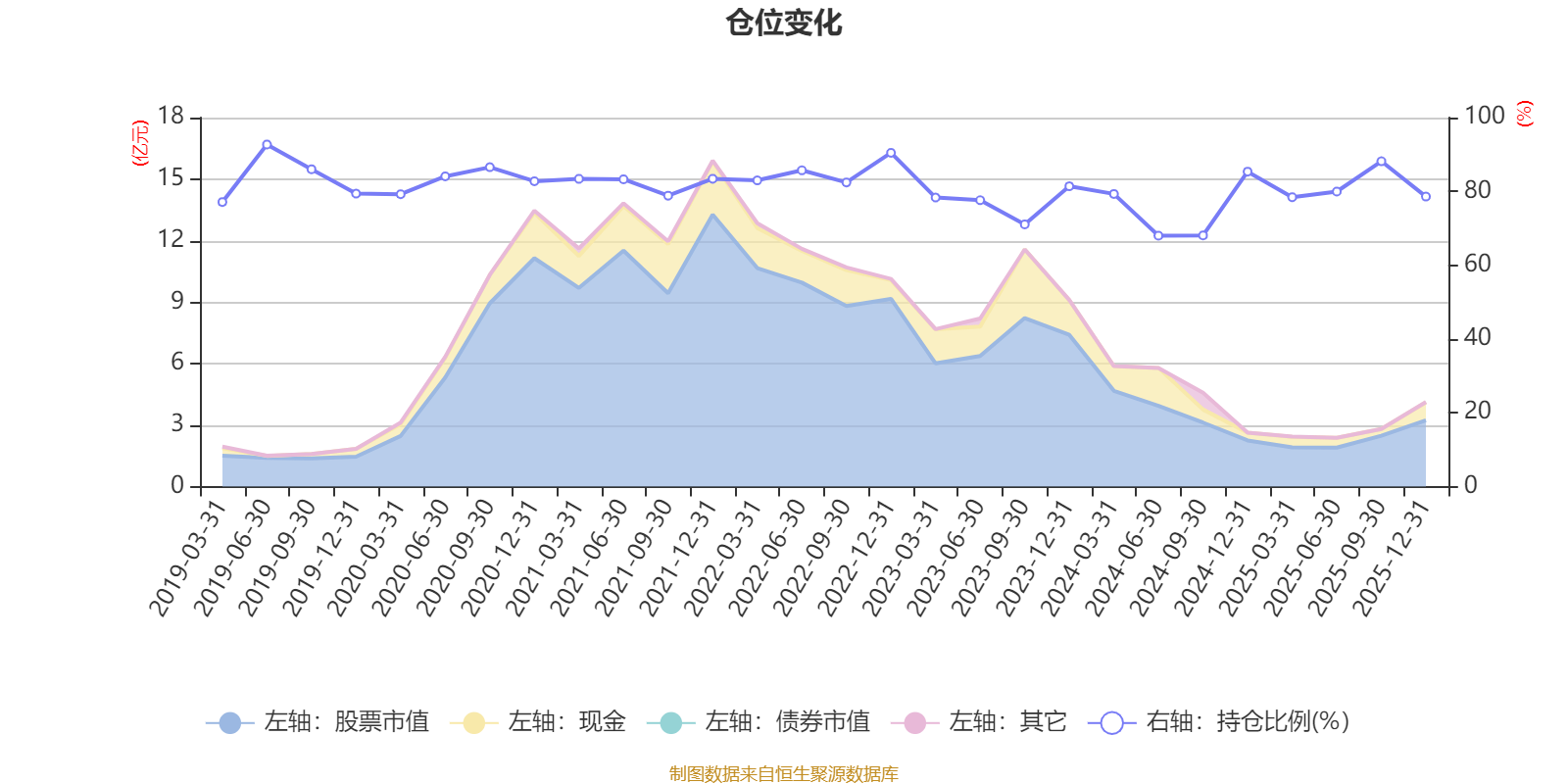 据定期报告数据统计,近三年平均股票仓位为77.86%,同类平均为85.83%。2019年上半年末基金达到92.7%的最高仓位,2024年上半年末最低,为68%。