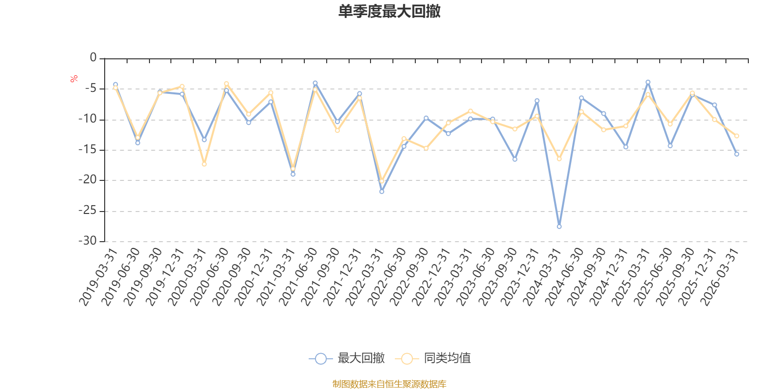 截至4月8日,基金近三年最大回撤为41.62%,同类可比基金排名474/550。单季度最大回撤出现在2024年一季度,为27.56%。