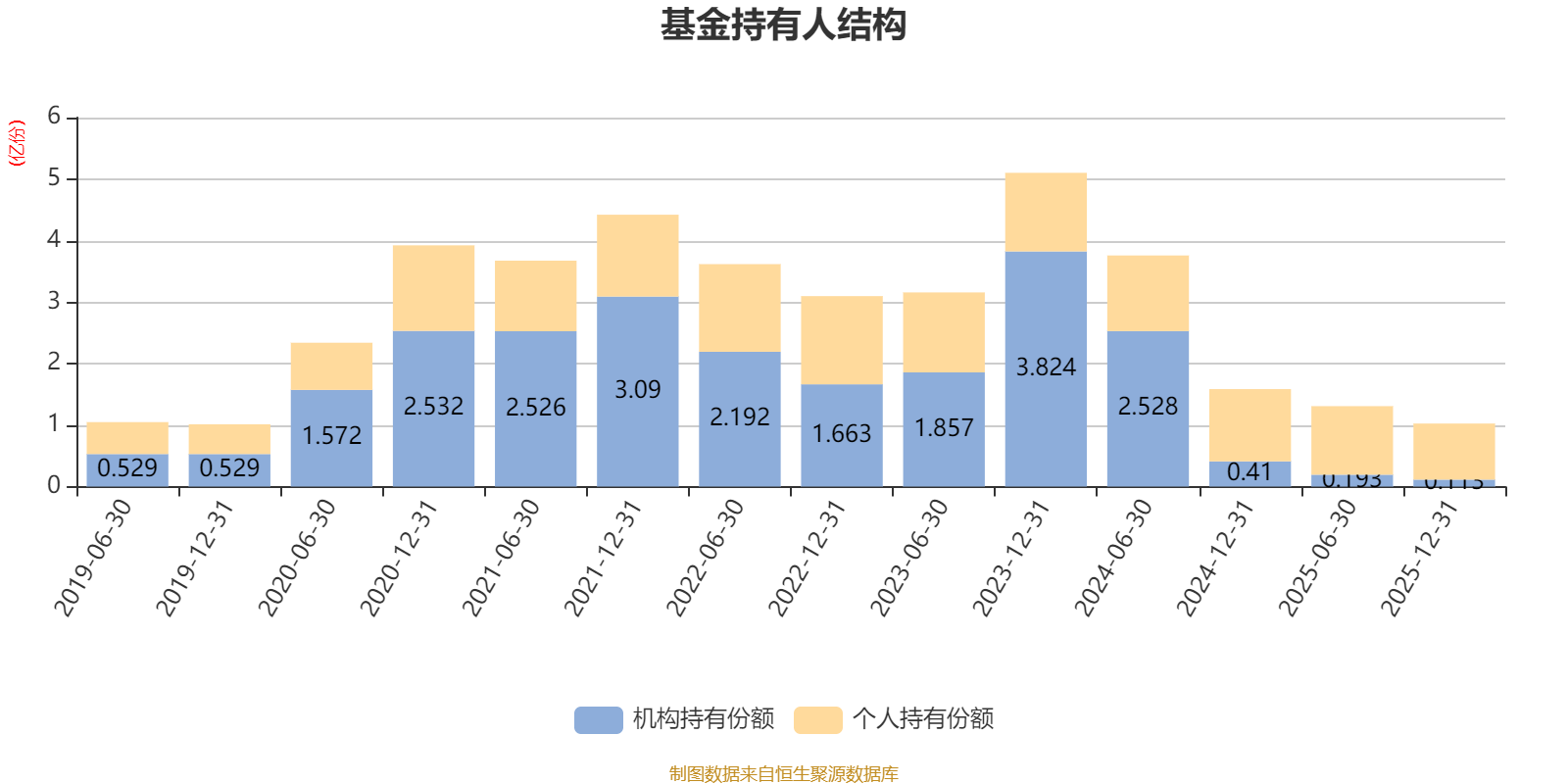 截至2025年12月31日,基金持有人共计3.07万户,合计持有1.02亿份。其中管理人员工持有11.18万份,占比0.11%,机构持有份额占比11.07%,个人投资者占比88.93%。
