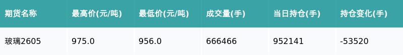 南财智讯4月10日电,盘后期货数据显示,郑州商品交易所的玻璃主力合约收跌1.33%,收盘报963.0元/吨,日内资金流出3.05亿元。其他相关指标见下表: