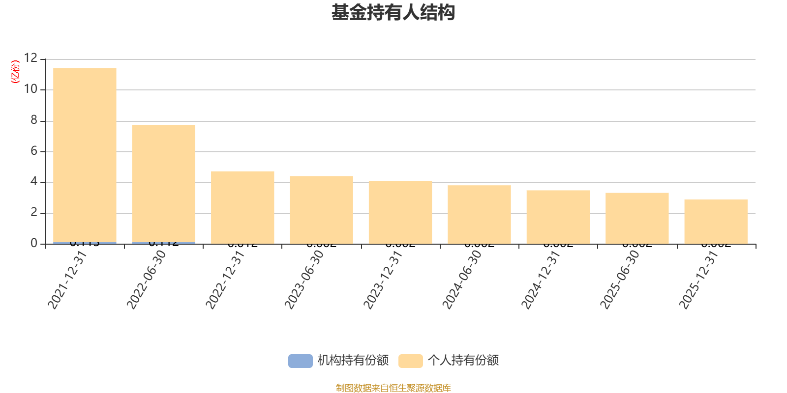 截至2025年12月31日,基金持有人共计3526户,合计持有2.88亿份。其中管理人员工持有25.57万份,占比0.09%,机构持有份额占比0.09%,个人投资者占比99.91%。