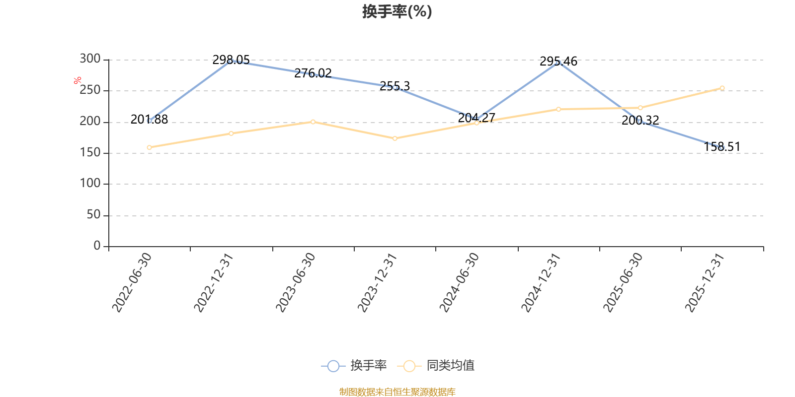 截至2025年12月31日,基金最近一年换手率约362.92%,持续1年低于同类均值。