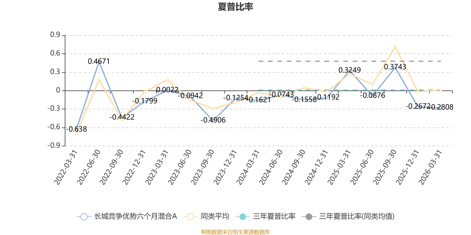 截至3月31日,基金近三年夏普比率为0.0094,位于同类可比基金515/550。